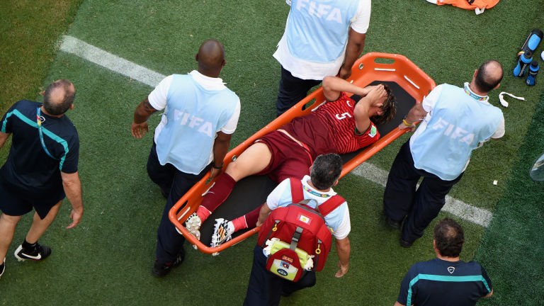 Portugal no solo se llevo la goleada de Alemania en el primer partido de la Fase de Grupos, además Pepe fue, injustamente, expulsado en el primer tiempo del encuetro y ha sido sancionado con un partido. Hugo Almeida tuvo que ser sustituido con molestias musculares y se estima que puede estar dos semanas en el dique seco. Y, por si eso fuese poco, Coentrao se lesionó de gravedad y se pierde lo que queda del Mundial. Se juegan la clasificación a Octavos con EEUU y Ghana y con estas bajas parece que todo depende de Cristiano Ronaldo. Veremos que tal responde una defensa completamente nueva sin Coentrao ni Pepe.